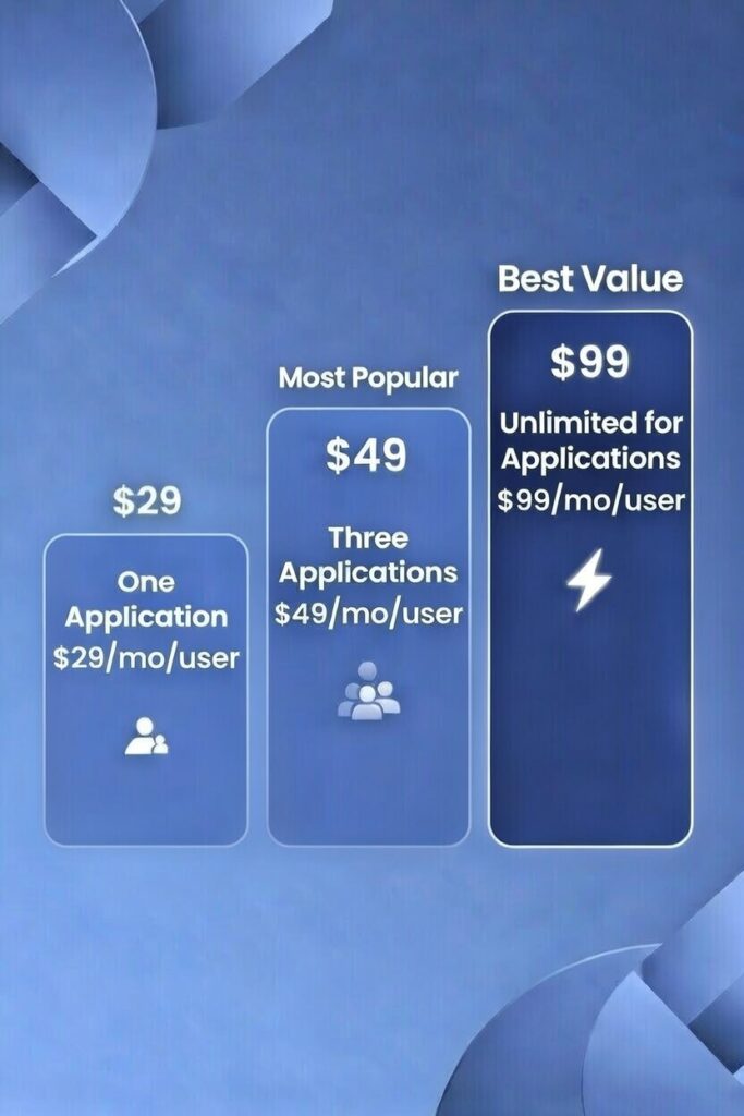 Then Unlimited at $99/mo per user? Get as many applications as you need with zero extra fees, one login, one contact, one invoice—enterprise-grade efficiency at a fraction of piecing together multiple vendors.